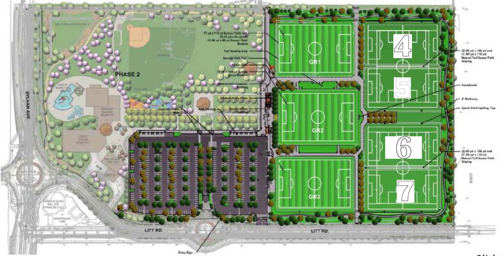 7 full-sized soccer fields, including 3 synthetic turf fields with lighting for evening play.